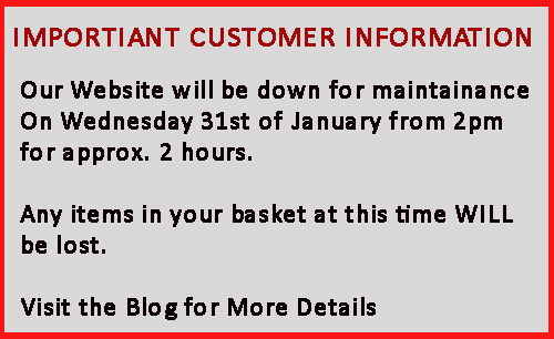 On Wednesday afternoon our website will be down from 2pm to approx 4pm, this is to facilitate a change of ERP and item structure, anything in your basket at this time will be lost.