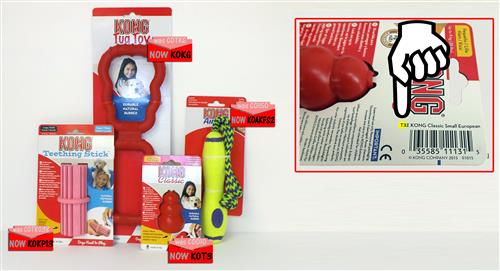 We have now changed the prefix for our Kong products to KO, making it easier to signify which lines are Kong and which lines are Co. Of Animals from the Prefix. We`ve also gone a step further and where our codes had no significance to any of the markings on the product we have changed our code so it reflects what is on the product, a Small Classic Kong Toy for example was CO010 has now become KOT3, KO being the Kong Prefix and T3 being the code on the product. We hope by switching to these codes it`ll make it much easier for our customers to lift a product and find a code which relates to our code and is then easier to order or to find on our website.